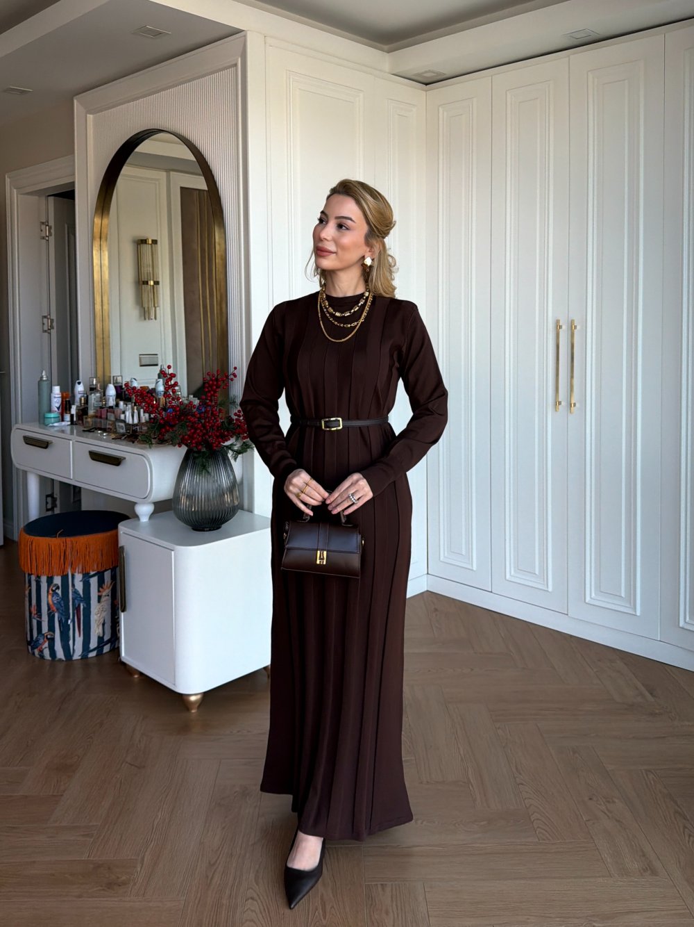 Elbise Kalın Çizgi Detaylıdır.