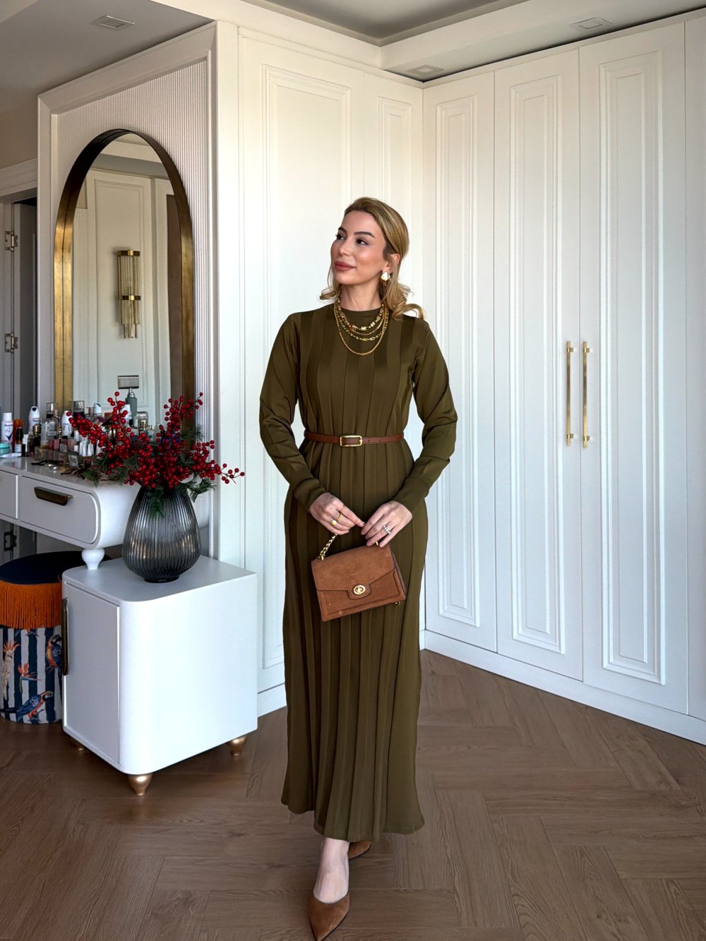 Elbise Kalın Çizgi Detaylıdır.