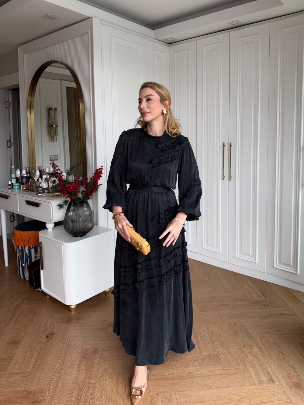 Elbise Yaka Arkasından Fermuarlıdır.