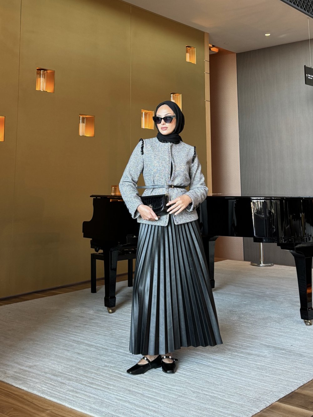 TAKIM CEKET DOKULU KAŞE ETEK DERİ KUMAŞTIR.