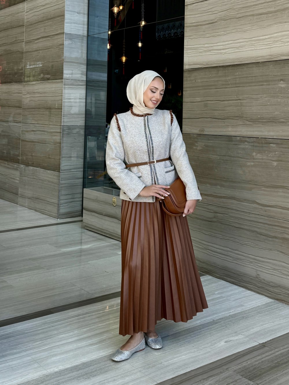 TAKIM CEKET DOKULU KAŞE ETEK DERİ KUMAŞTIR.