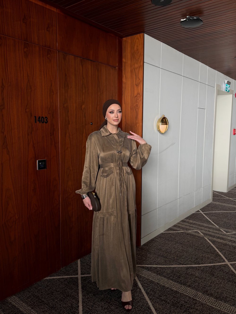 Elbise Boyundan Sarkan Tokalı Aksesuar Detaylıdır.