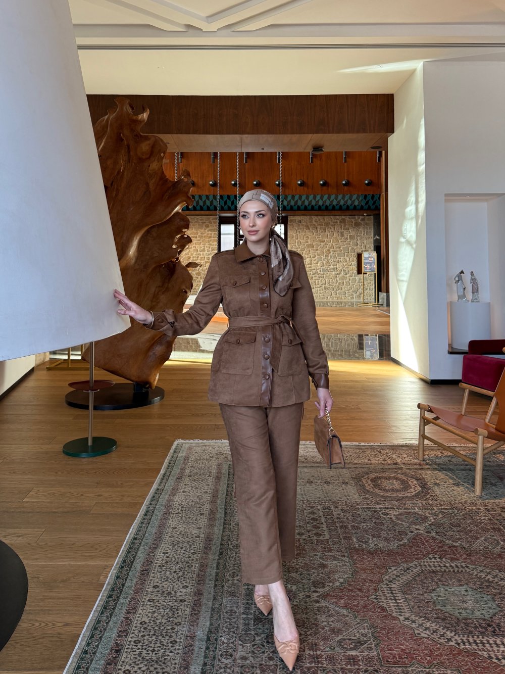 Çağla Pantolonlu Takım Taba