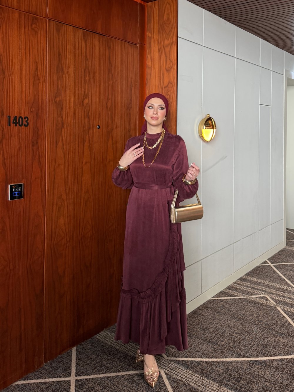 Elbise Etek Ucu Asimetrik Fırfır Detaylıdır.