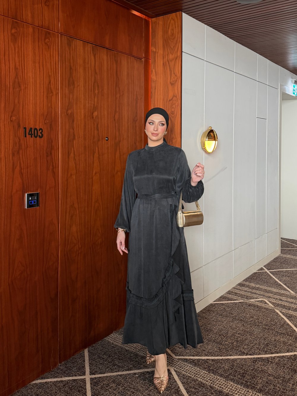 Elbise Etek Ucu Asimetrik Fırfır Detaylıdır.