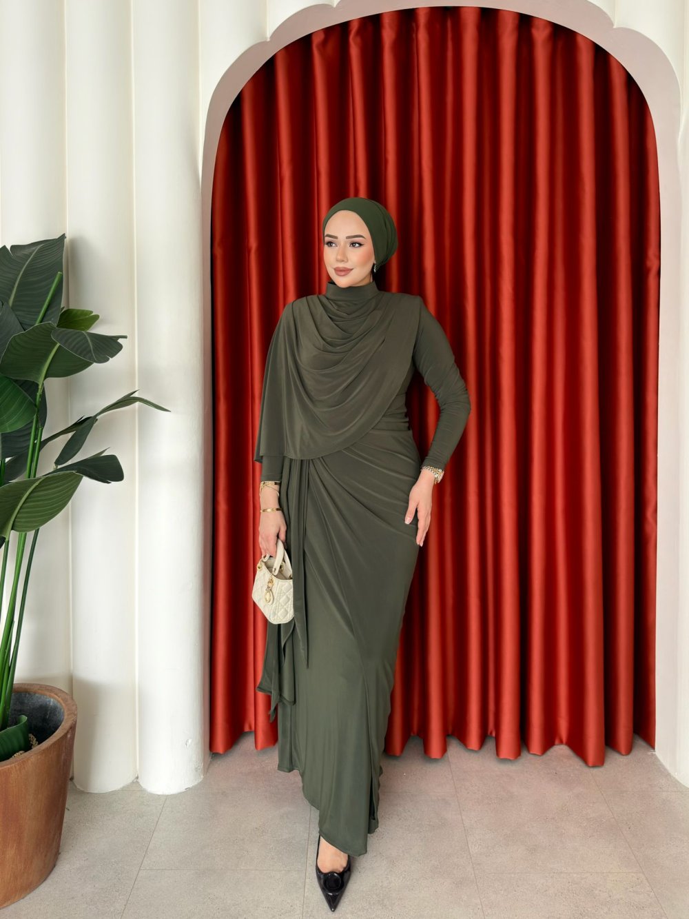 Elbise Yaka Arkasından Fermuarlıdır.