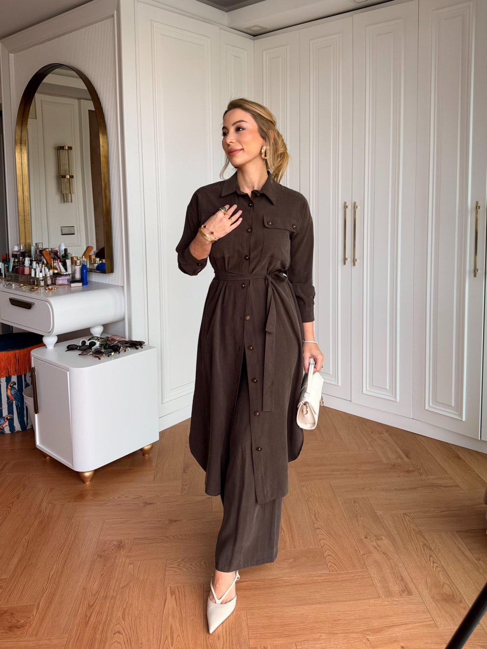 Takım Tunik Tam Boy Düğme Detaylıdır.