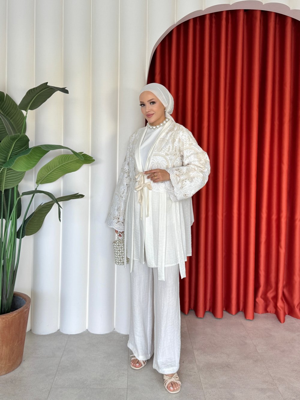 Takım 1.Sınıf Kimono Hasır Detaylı Güpür Kumaştır