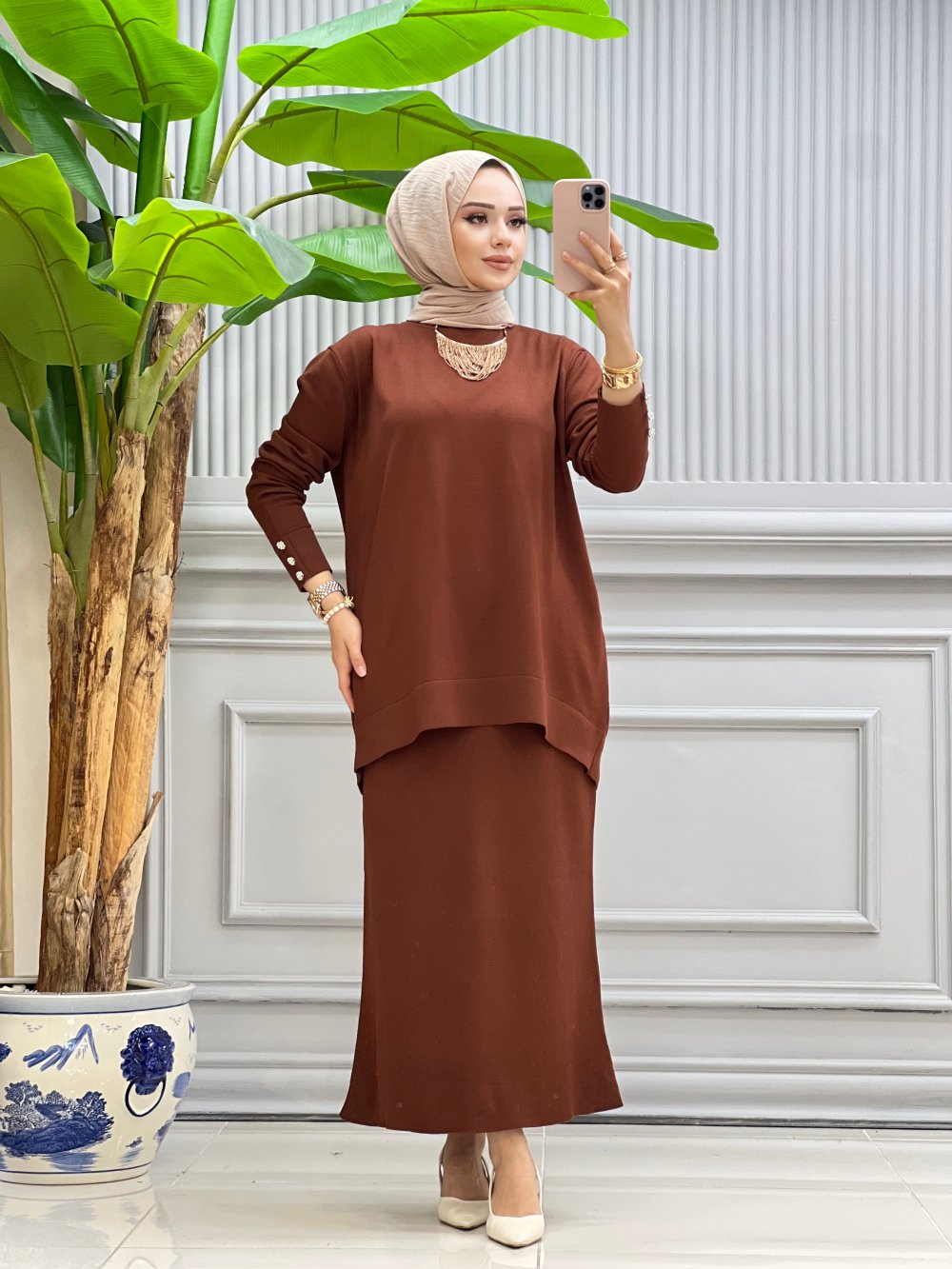 Hazan etekli takım kahverengi