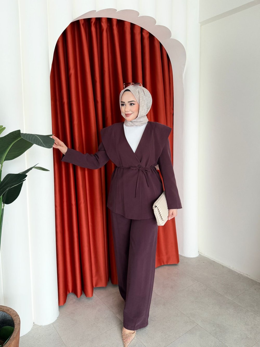• Ayşin Pantolonlu Takım Bordo