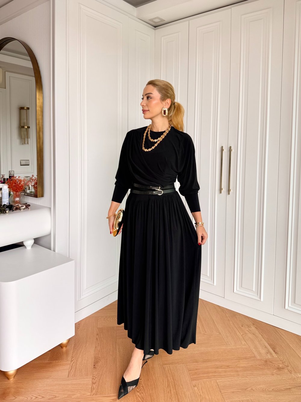 Elbise Önünde Drape Detayı Mevcuttur