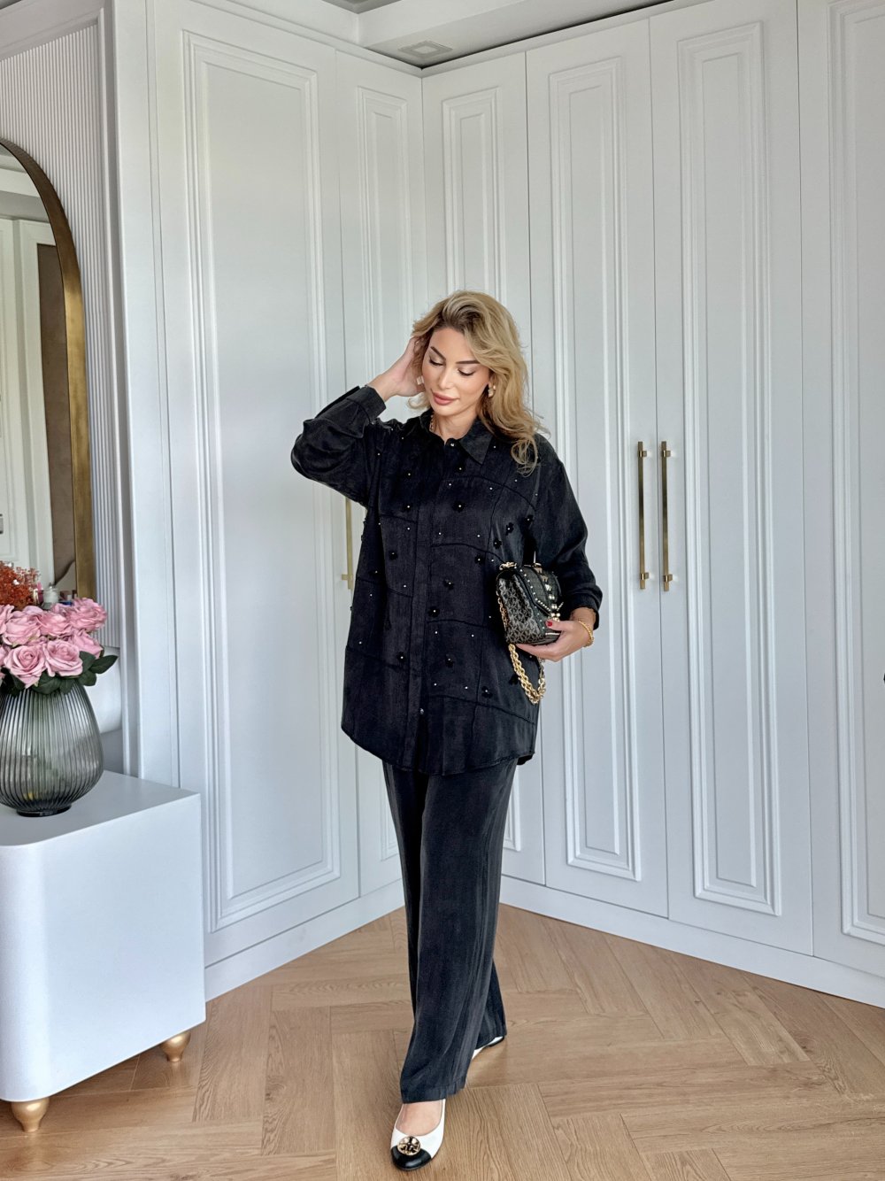 Gömlek Üzeri Gümüş Boncuk Ve Çiçek Detaylıdır