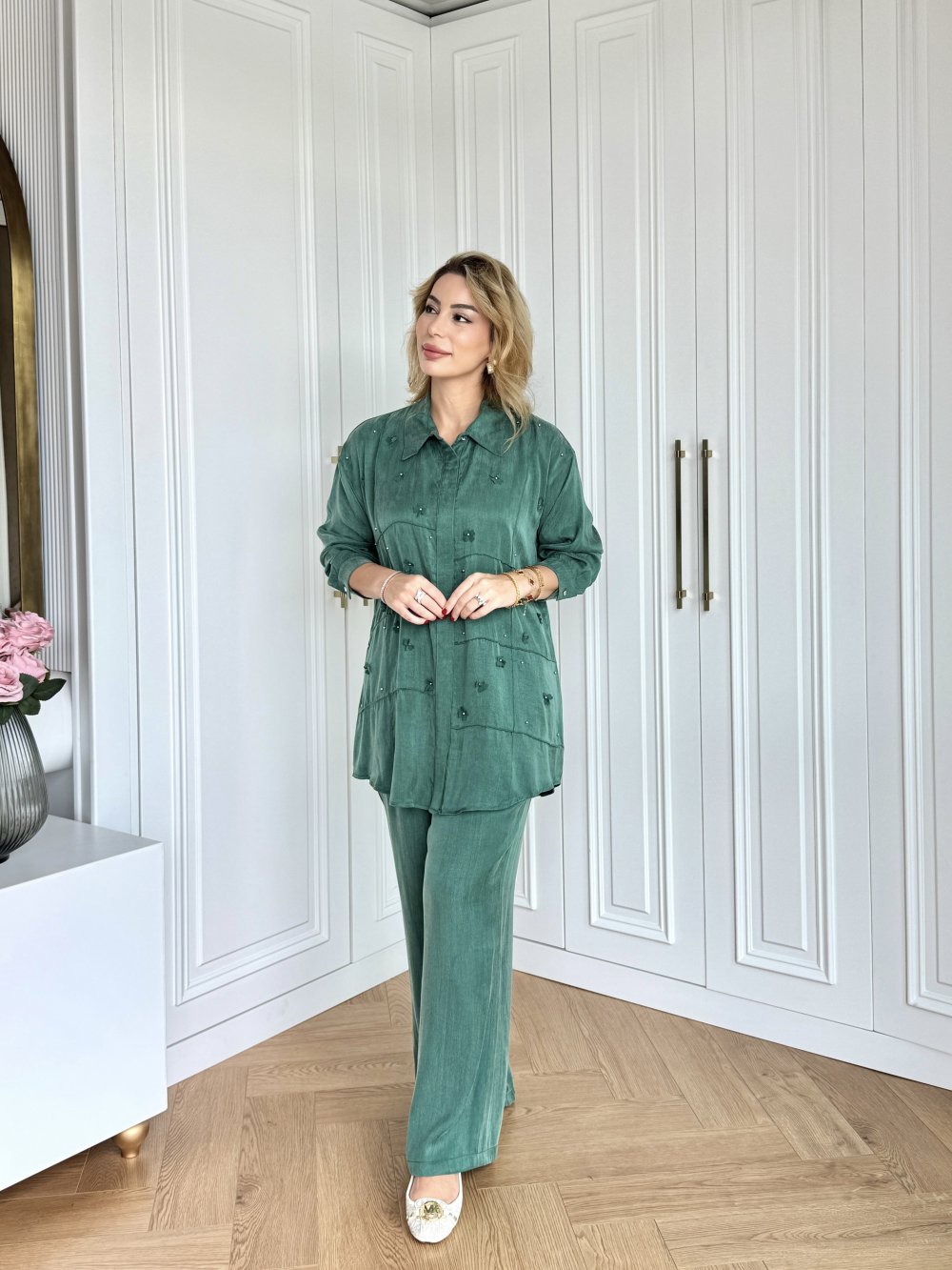 Işıl Pantolonlu Takım Zümrüt