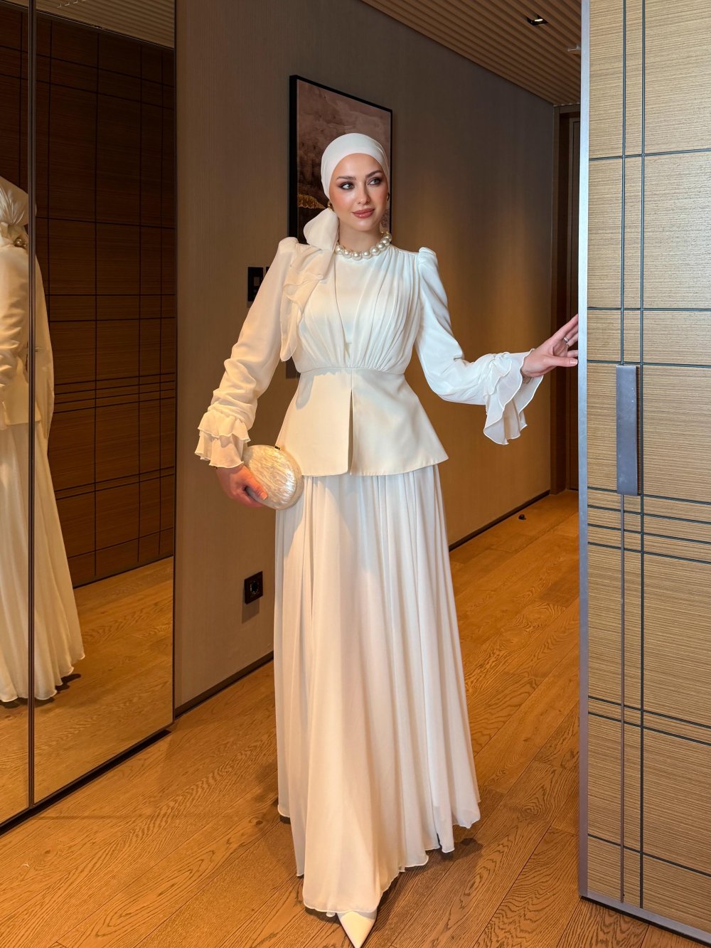 Üst Arkadan Fermuarlı, Kolları Fırfırlı ve Ön Bel Kısmı İç Göstermez Yırtmaçlı