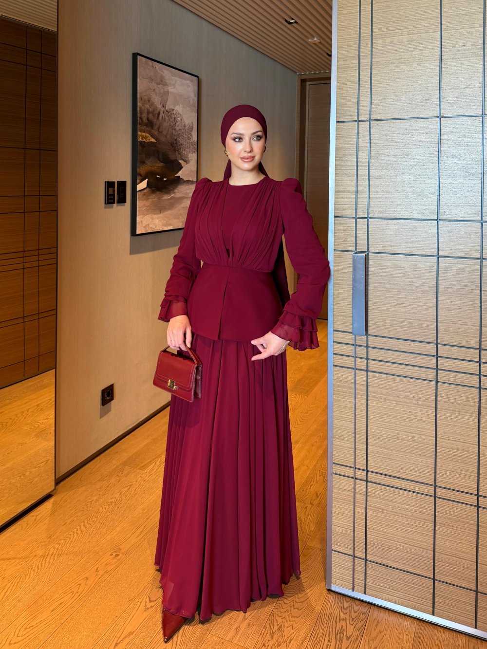 Üst Arkadan Fermuarlı, Kolları Fırfırlı ve Ön Bel Kısmı İç Göstermez Yırtmaçlı