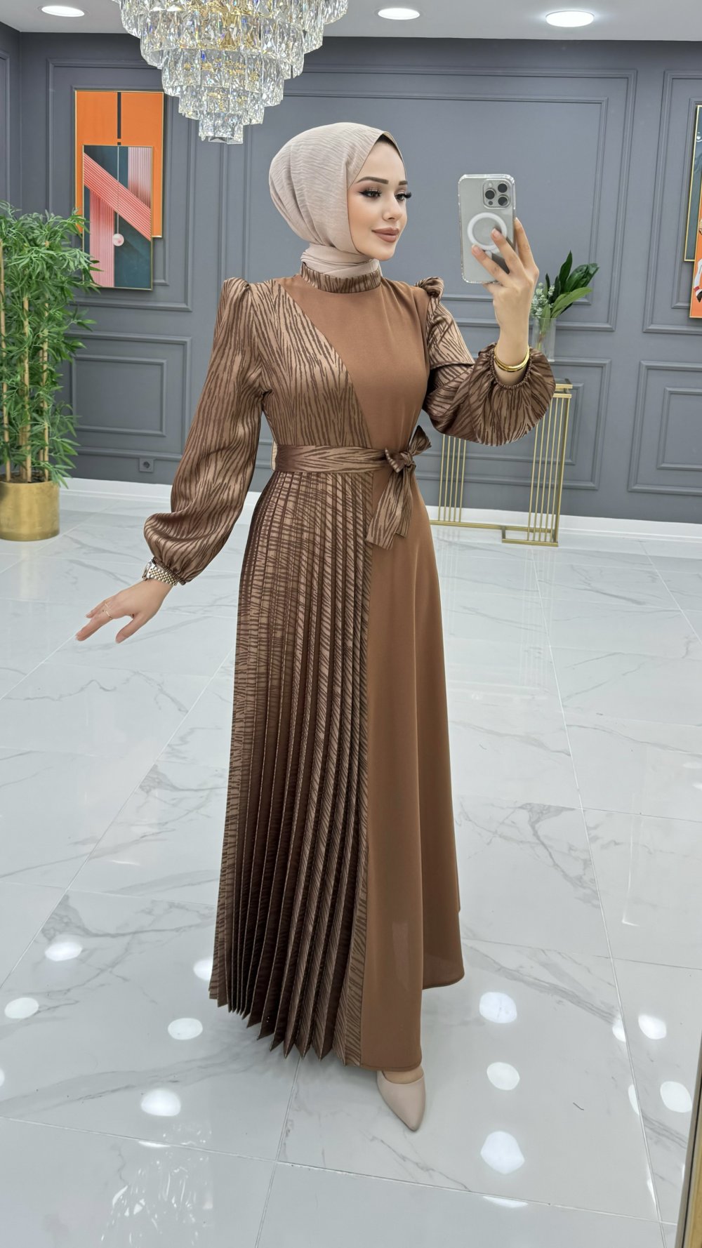 ELBİSENİN ÖN YÜZÜ PİLİSE DETAYLIDIR .