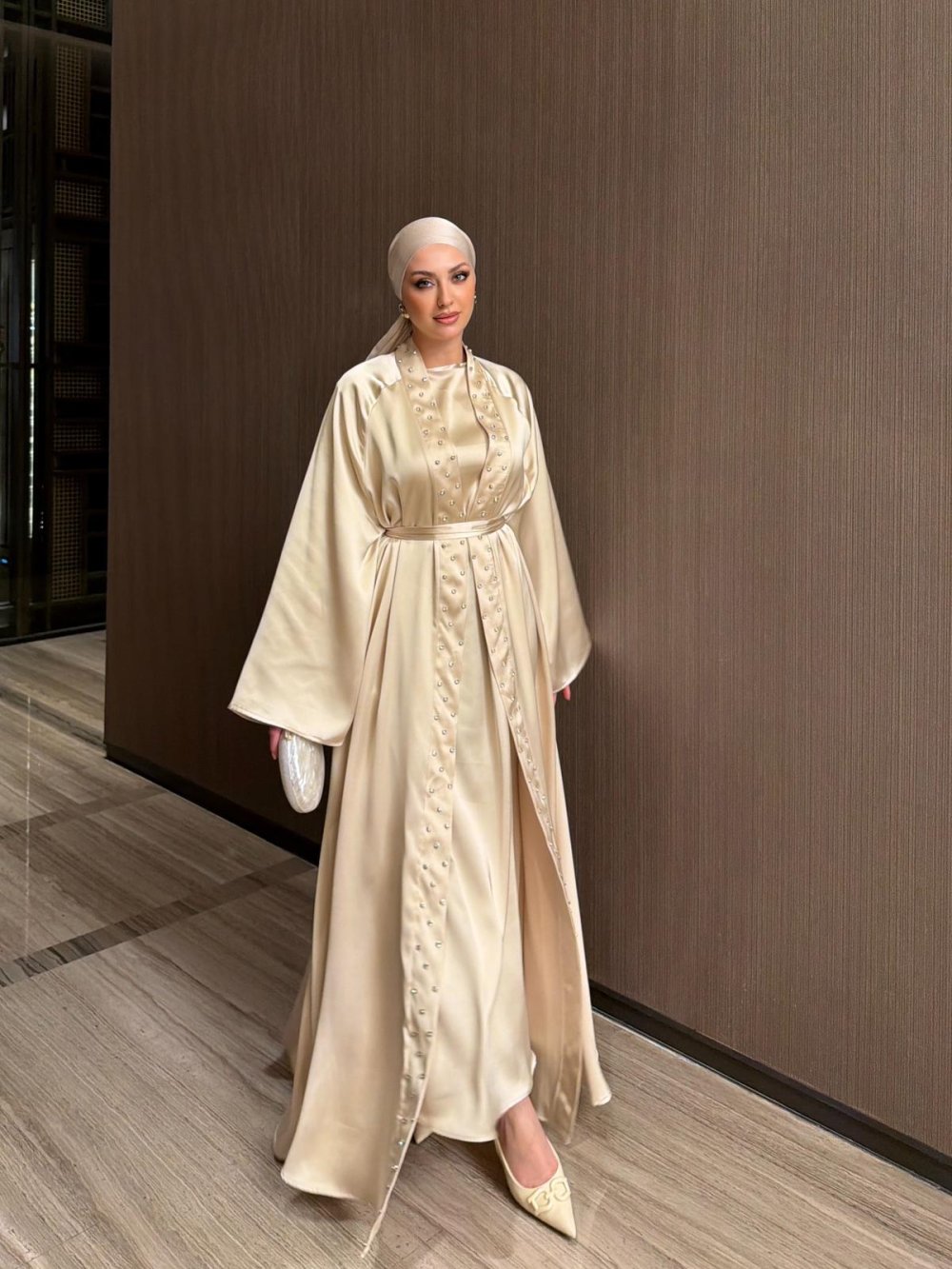 Üst Elbise Yakasından Taş Detaylı ve Kemerlidir