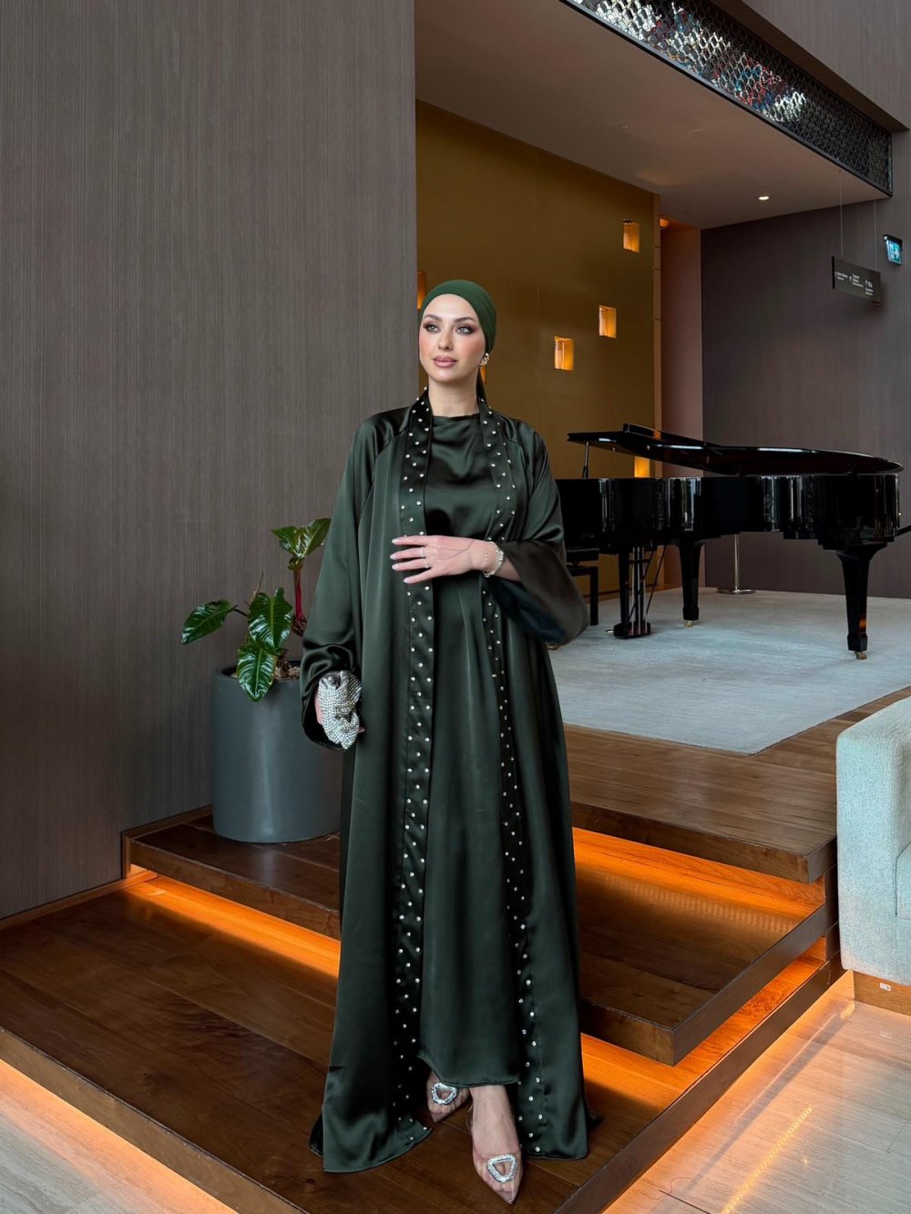 Üst Elbise Yakasından Taş Detaylı ve Kemerlidir